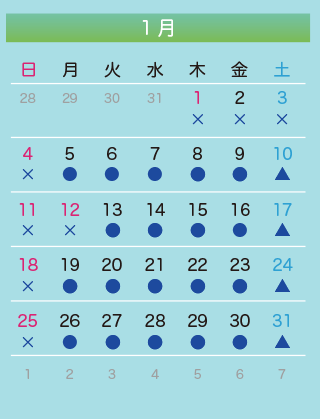 11月22日(土)は休診いたします。 11月19日と12月17日の第三水曜日は通常通り診療いたします。 12月31日(水)から1月4日(日)は年末年始の休診期間です。